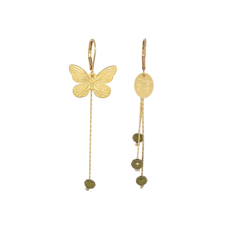 Assymetrical earrings with the 'PAPON' butterfly design