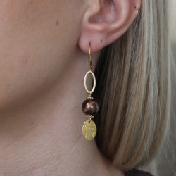 CLASSI 01 MONO earring Quick view golden silvered Pearly white Beige nacré Brun nacré Kaki nacré Marine nacré Gris nacré Noir nacré Assymmetrical earrings with the CLASSI design Retail price on our webshop : 52€ VAT included