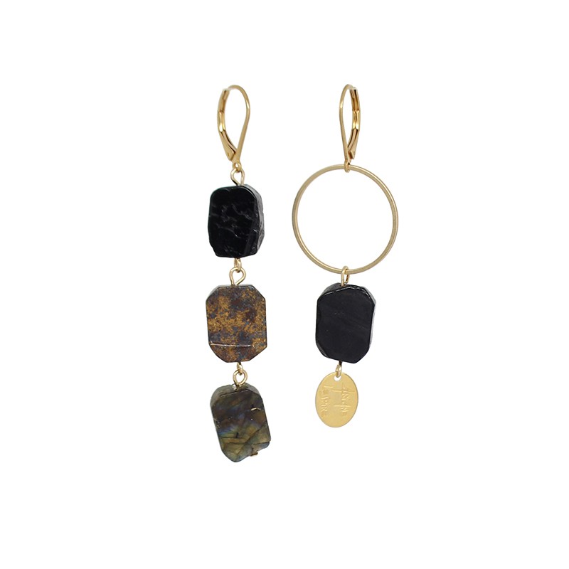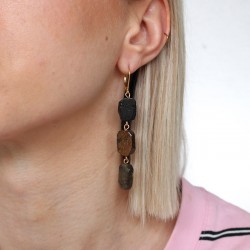 ROCK 01 earrings Quick view golden silvered Pink powder | ROCK Salmon pink | ROCK Ultramarine | ROCK Green | ROCK Kaki | ROCK Brown | ROCK Black | ROCK Asymmetric earrings with the 'ROCK' design Retail price on our webshop : 58€ VAT included