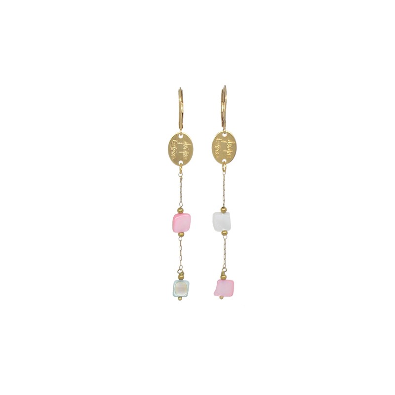Boucles d'oreille asymétriques avec design 'NANA' en pierres naturelles nacrées